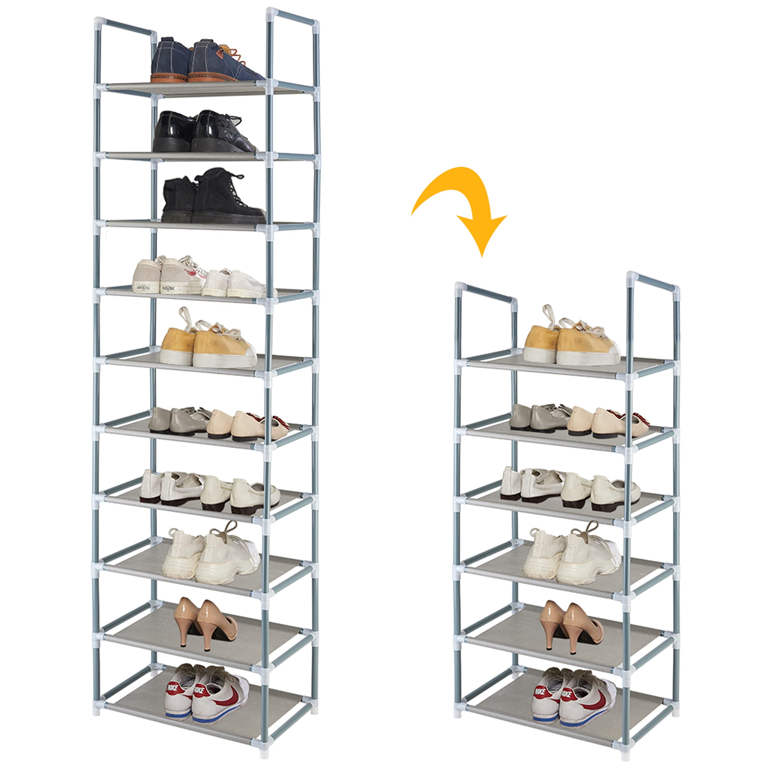 Amazon Com Forup 10 Tiers Stackable Shoe Rack Adjustable Shoe Storage Organizer Shelf Non Woven Fabric Shoe Tower Shelf Grey Home Kitchen